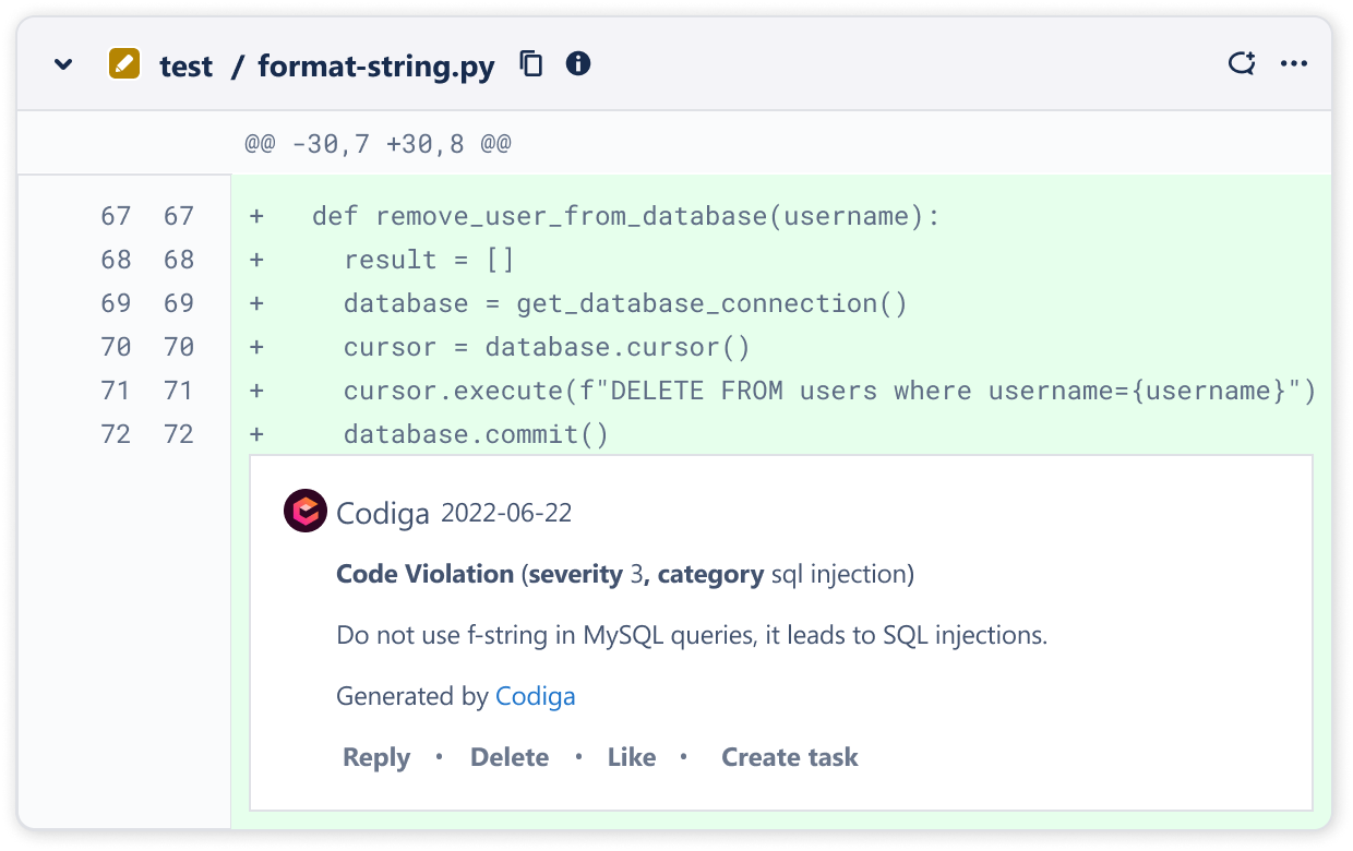 Get real-time feedback faster at each Pull Request! Codiga highlights bugs, security, and maintainability issues within seconds.